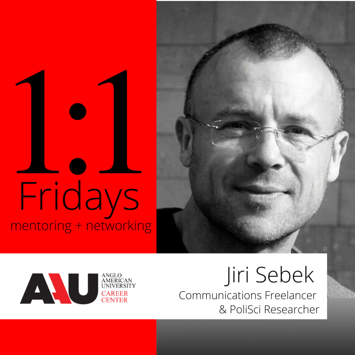 AAU students, alumni, and friends of the AAU community are all welcome to participate. Sessions are booked for 45-minute blocks. Our upcoming guest is Alumnus, Jiri Sebek.